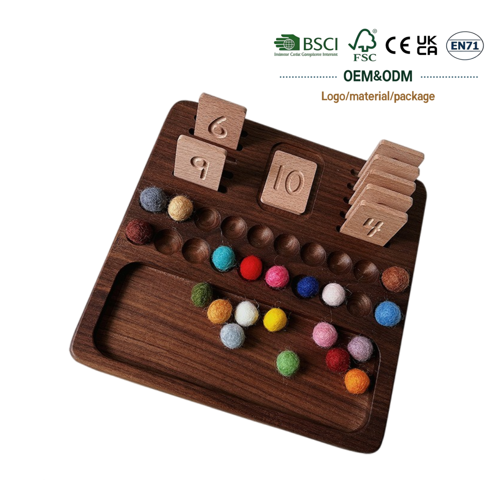 JET OEM 蒙特梭利玩具手工数字板/计数板由黑胡桃木和山毛榉木制成的木制教育玩具