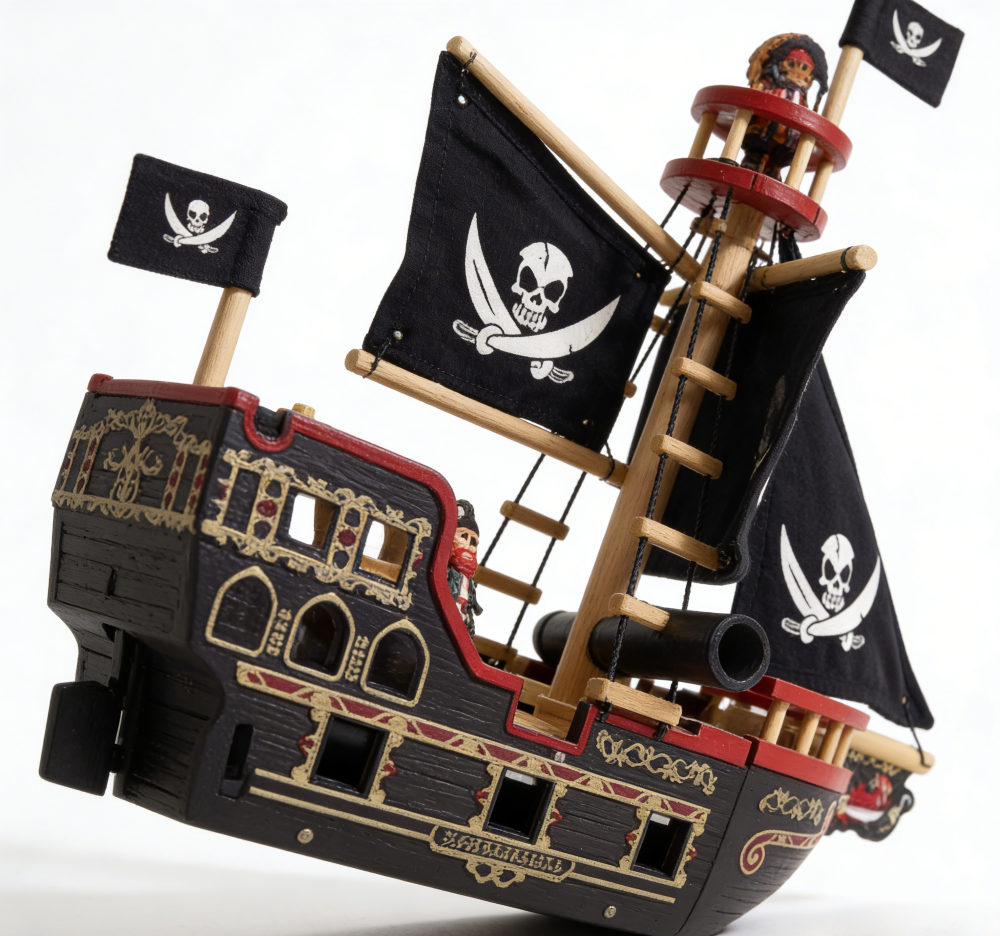 木制海盗船模型 儿童益智拼装玩具 加勒比海盗船摆件