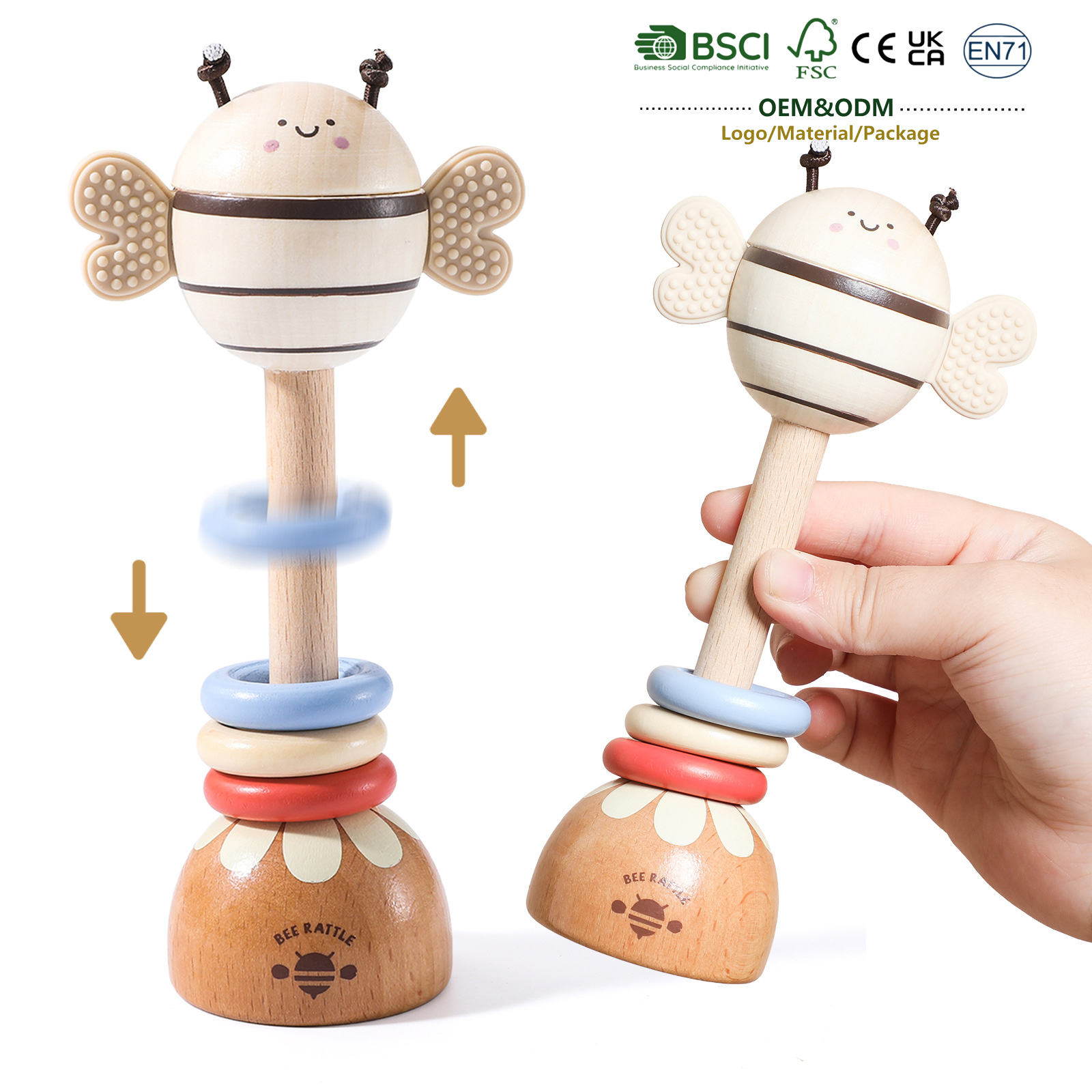 蒙特梭利木制儿童益智音乐摇铃玩具安抚抓握牙胶动物手摇铃婴儿摇铃