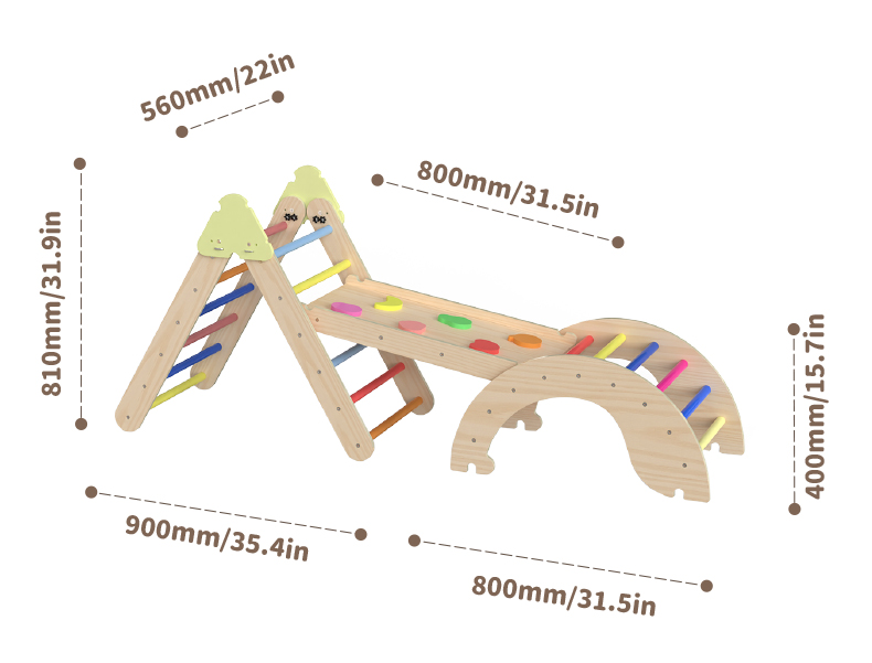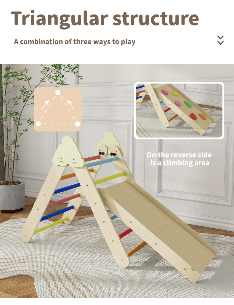 • 四合一木制皮克勒三角爬行架 - 儿童蒙特梭利体能发展游戏健身架