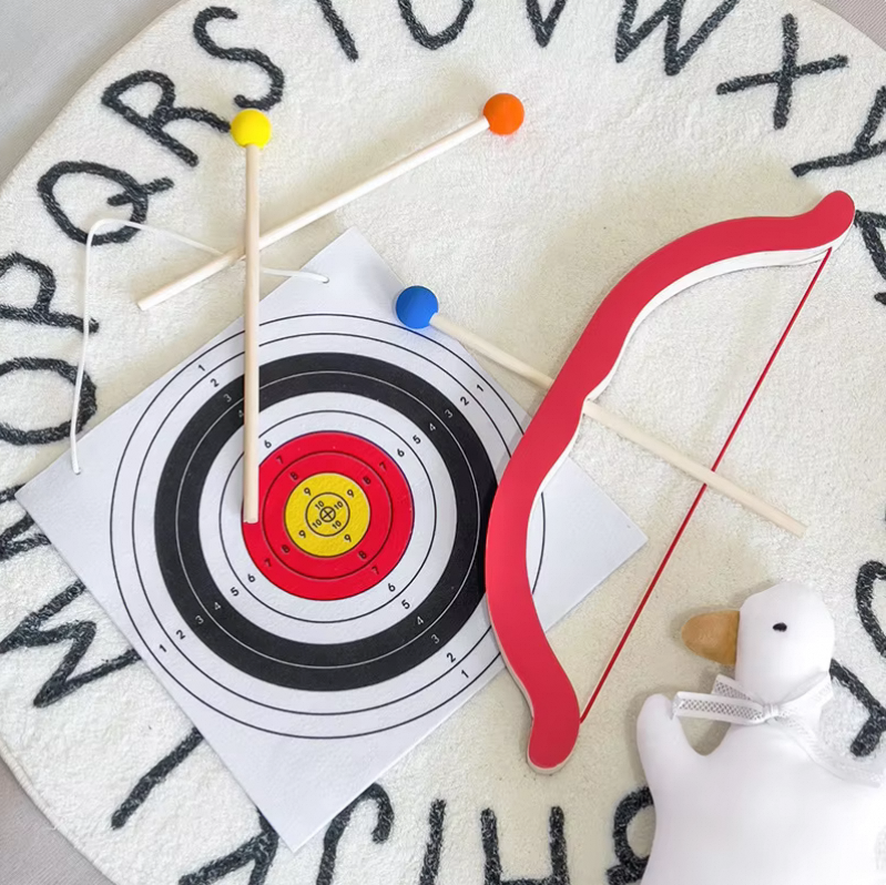- 木制儿童弓箭靶套装 - 安全室内射箭过家家玩具