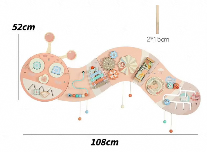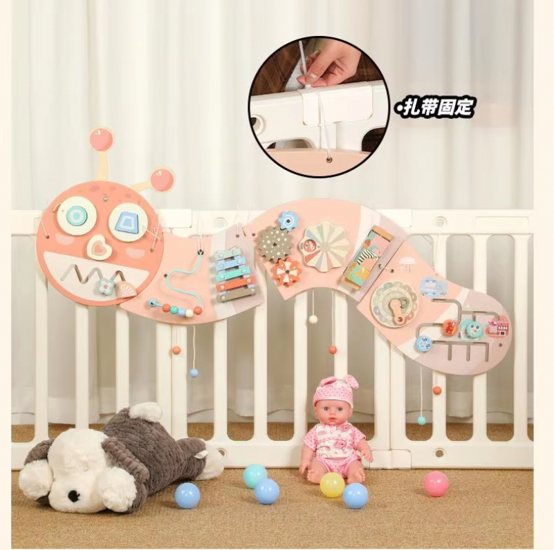 早教蒙特梭利玩具粉色毛毛虫墙活动板多功能木制装饰挂件益智游戏