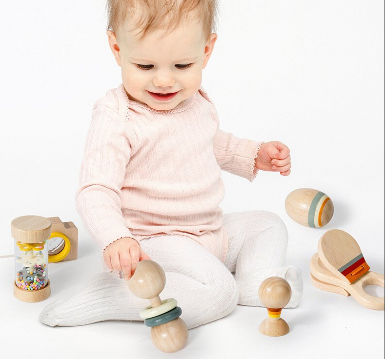 蒙特梭利玩具木制婴儿摇铃7件套 婴儿手眼协调练习早教玩具 适合婴幼儿