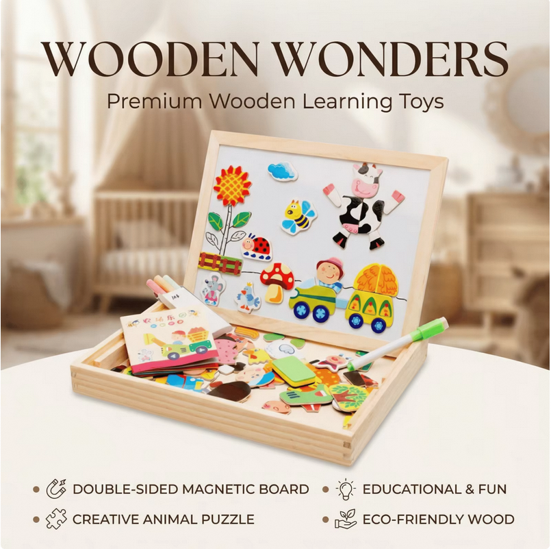 - 多功能创意表达工具:双面板提供磁性游戏表面和干擦书写区域,支持艺术绘画、手写练习和教育游戏,全部集于一产品。