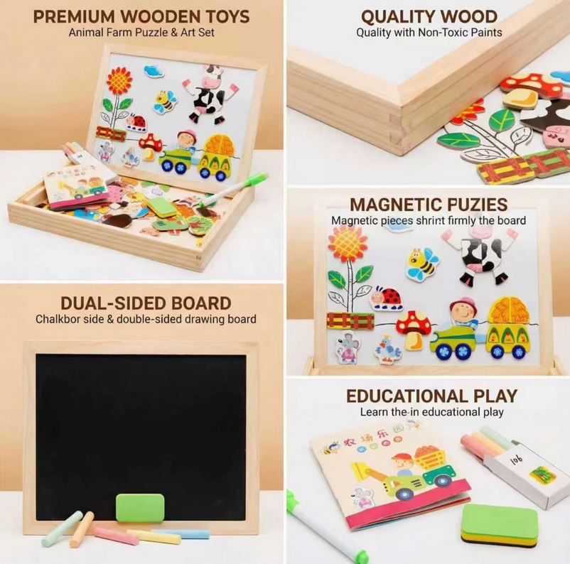 - 多功能便携学习站:集磁力拼图、画板和书写画架于一体,收纳于小巧便携的箱体内,提供多种教育活动,方便携带,是您旅行途中的理想选择。