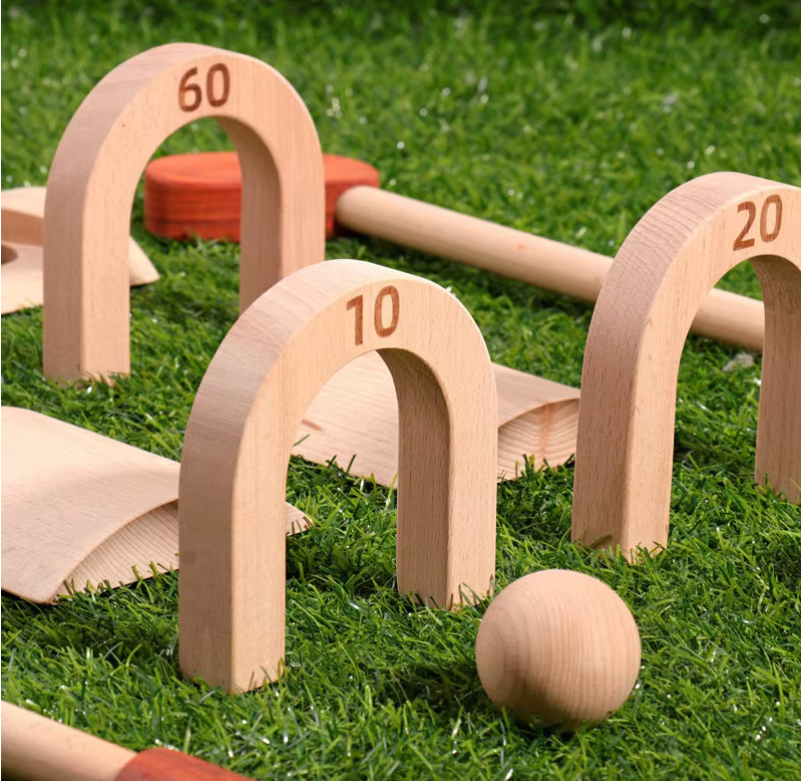 - 儿童木制槌球高尔夫套装,户外多功能运动玩具