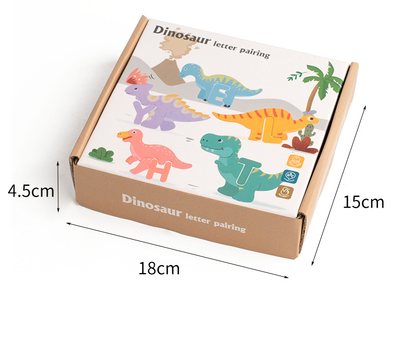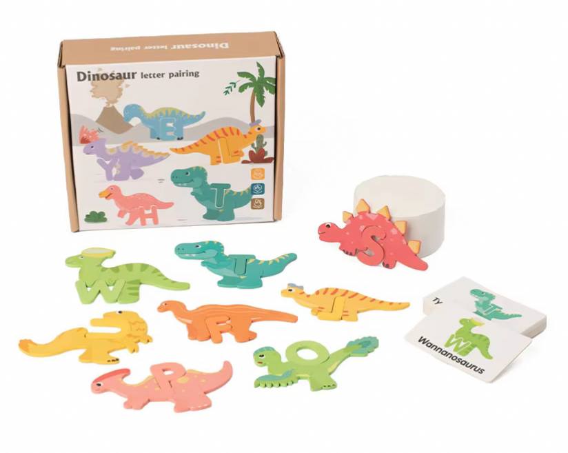 • 木制恐龙字母配对拼图,儿童字母学习玩具