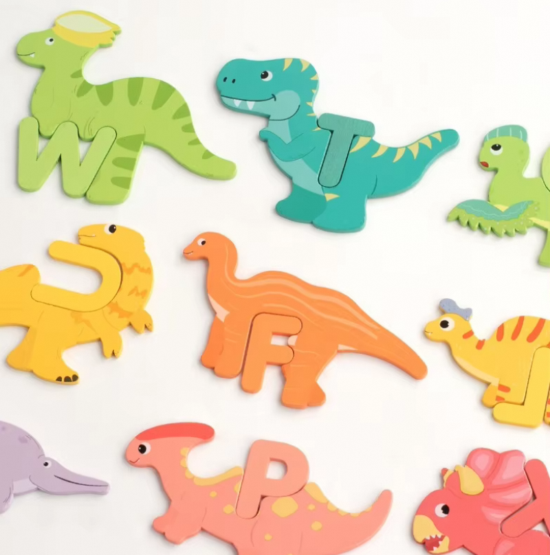 • 2-6岁恐龙字母学习拼图,安全木制早教玩具套装