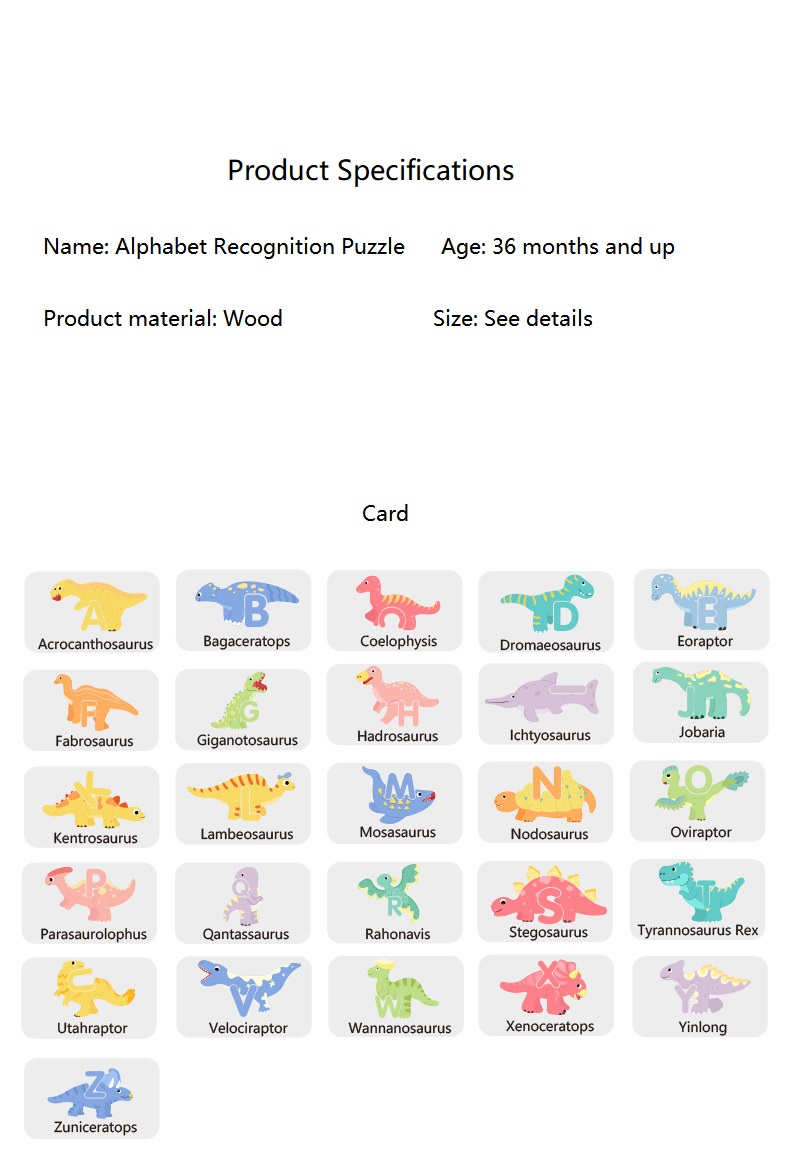 • 2-6岁恐龙字母拼图,儿童精细动作认知发展套装
