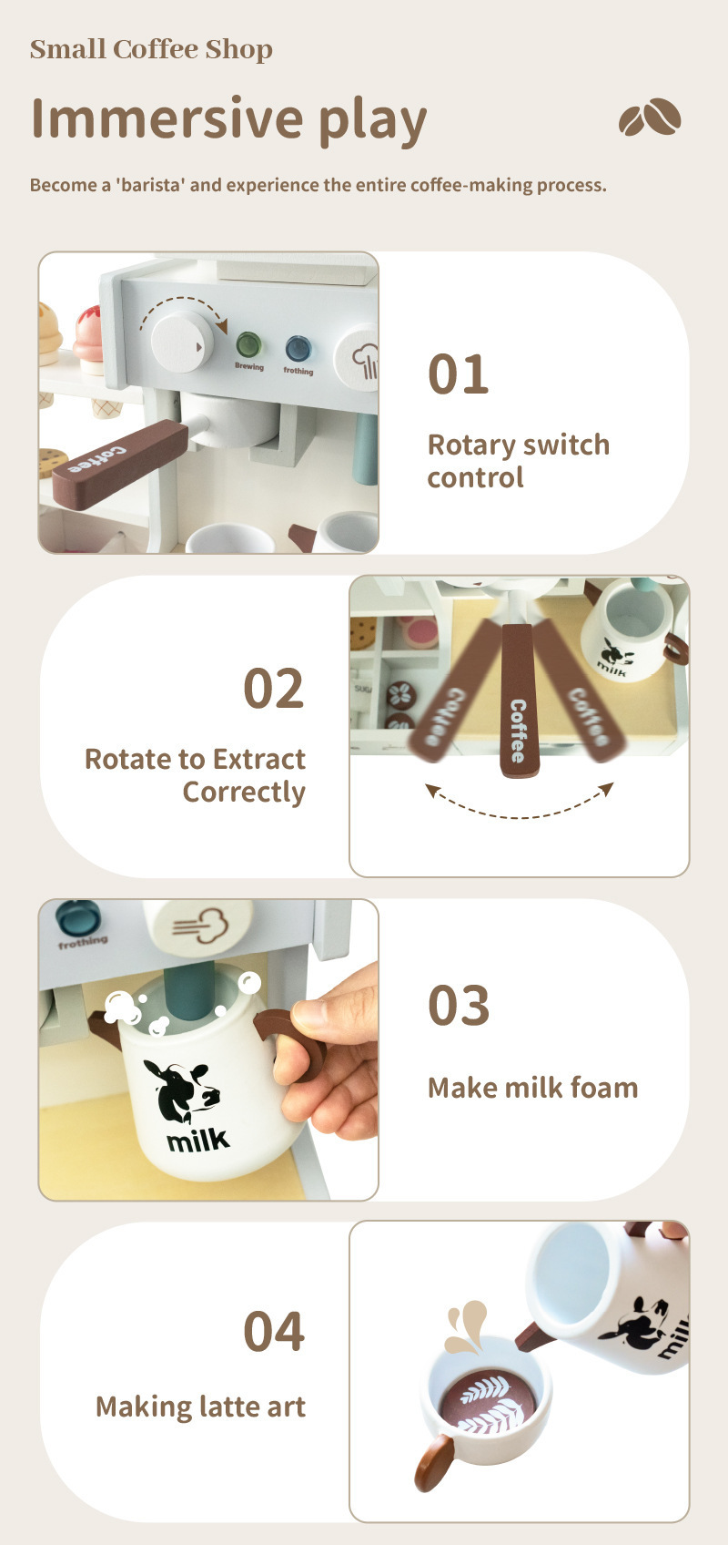 • 木制儿童咖啡店过家家玩具套装 - 互动咖啡机角色扮演玩具