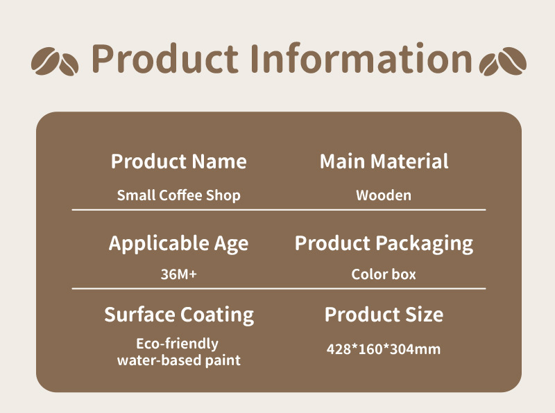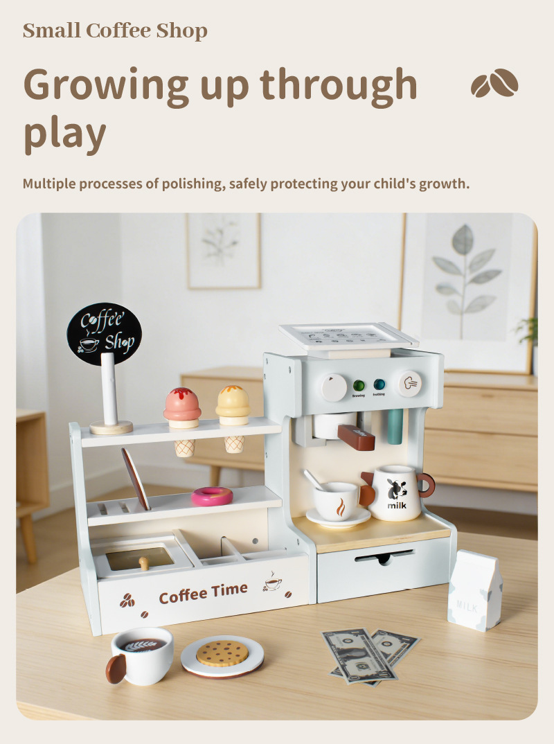• 安全木制咖啡店套装,幼儿园过家家玩具辅助教具