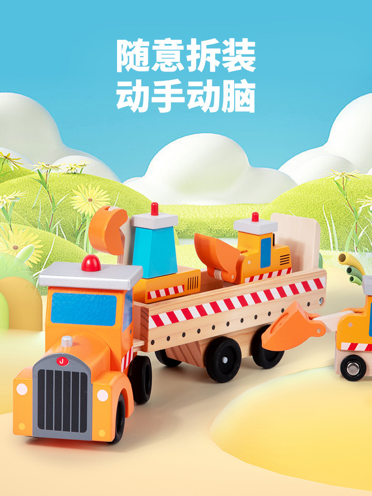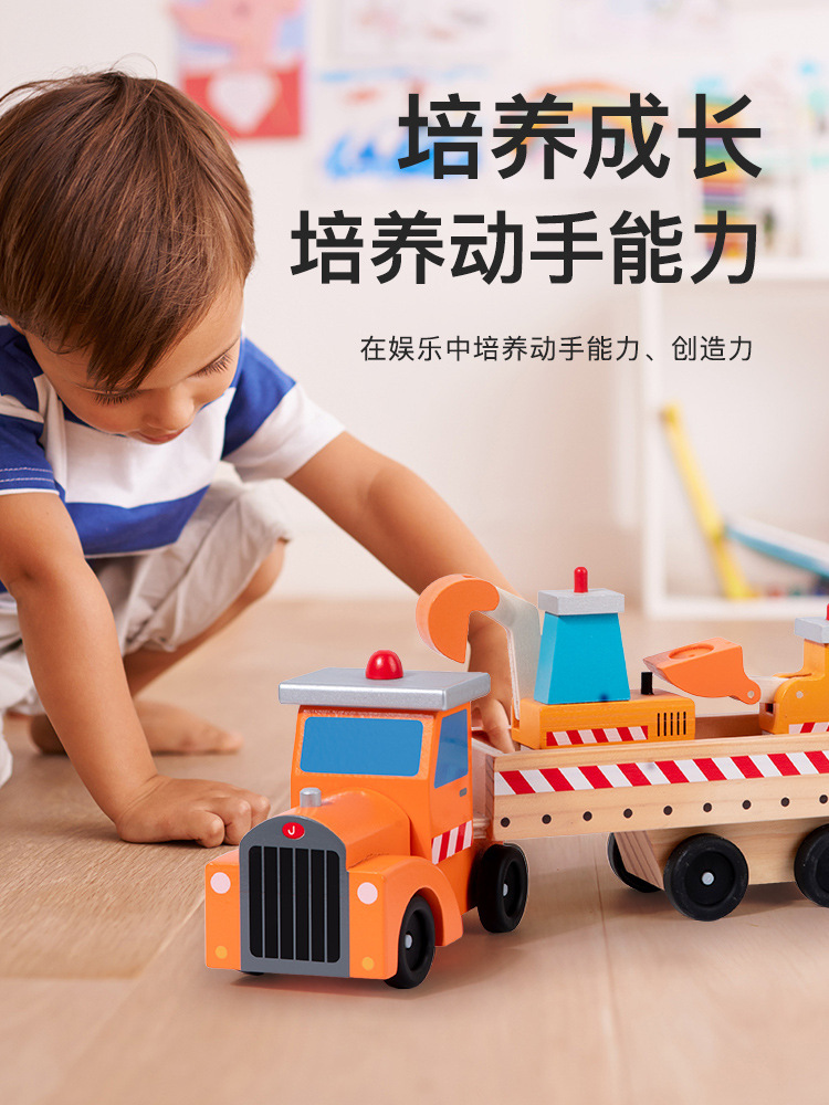 首页    交通系列玩具    木制模块化多功能儿童假装游戏工程运输车套装男女通用益智玩具