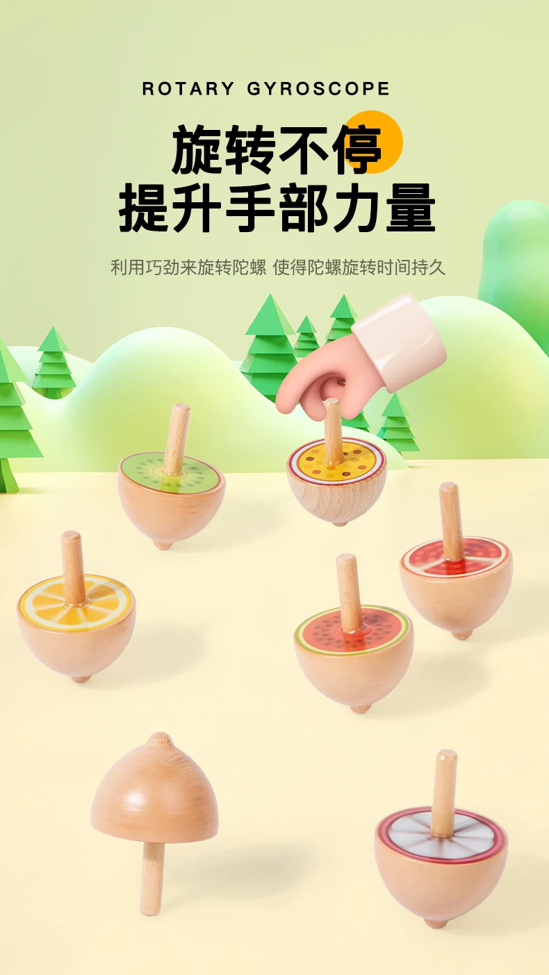 新品动物水果陀螺游戏早教蒙特梭利环保感官玩具女孩用