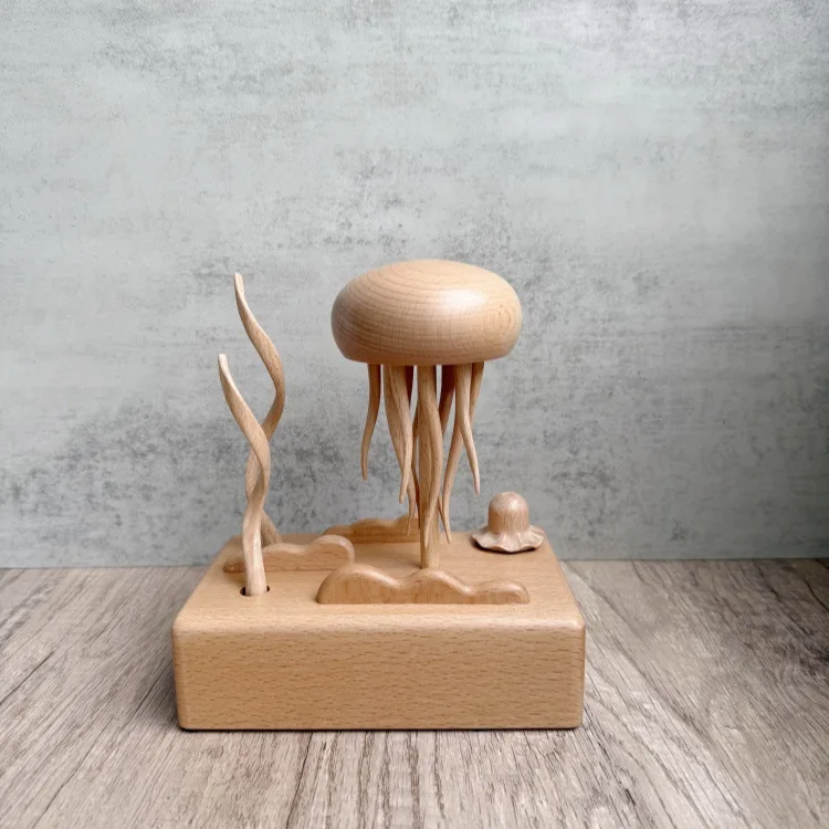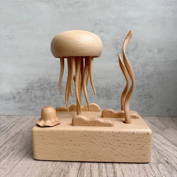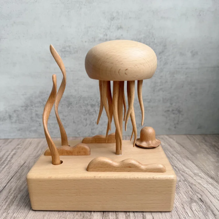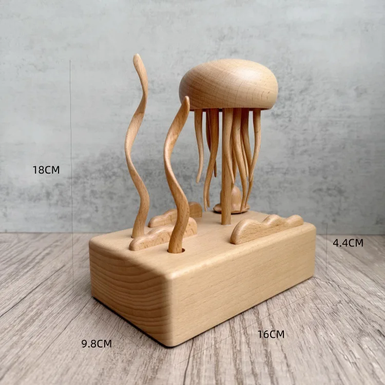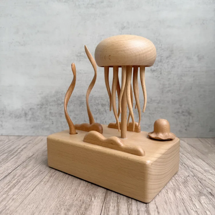 这款音乐盒采用优质天然木材制成,表面光滑无毛刺。其精密的机械结构(包括可活动的鲸鱼关节和日历组件)确保了经久耐用,以及精致生动的律动。