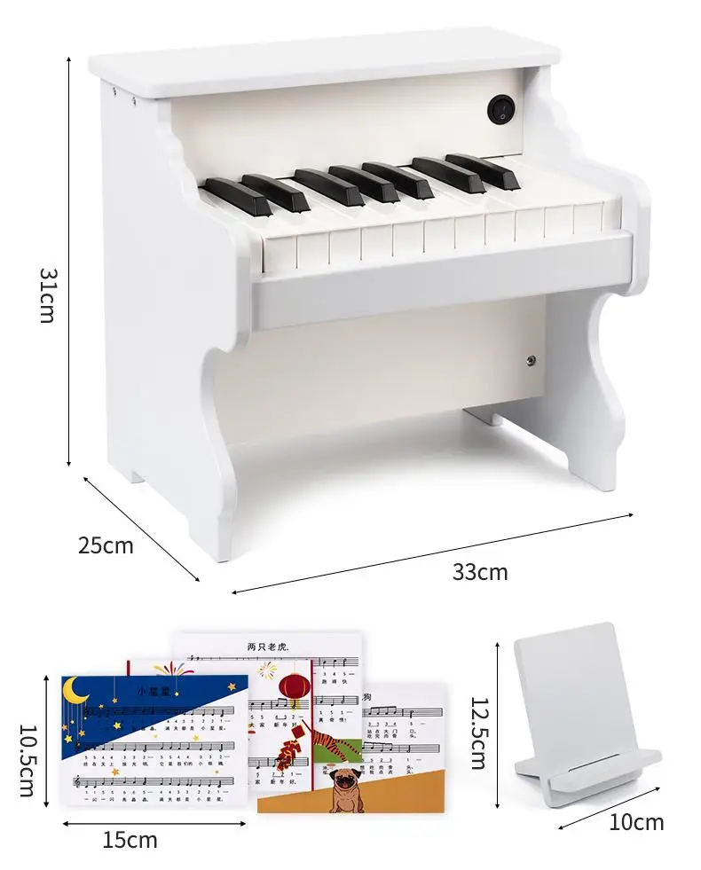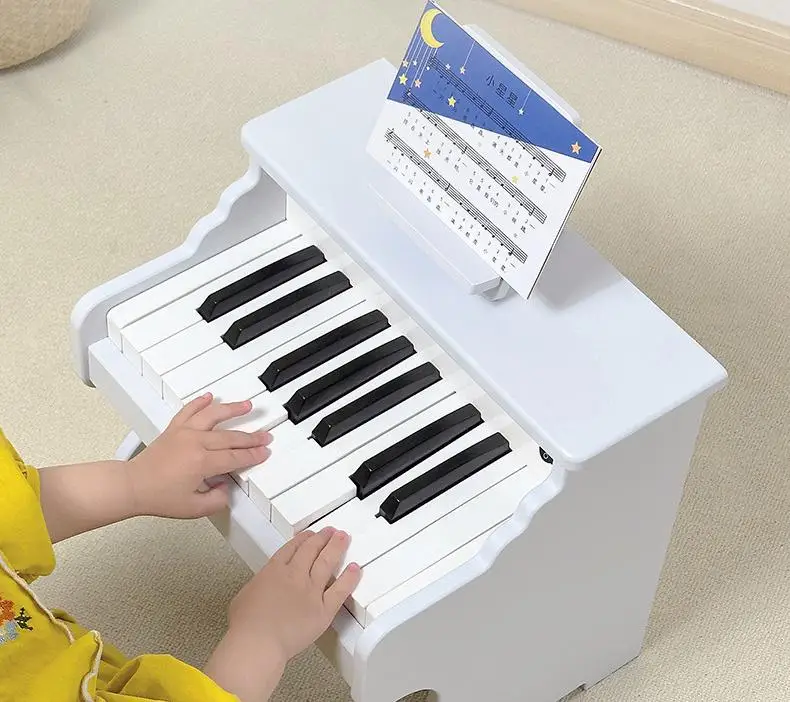 逼真的钢琴造型,简洁的按键布局,是3-6岁孩子音乐感知启蒙工具,也可作为房间的装饰摆件。