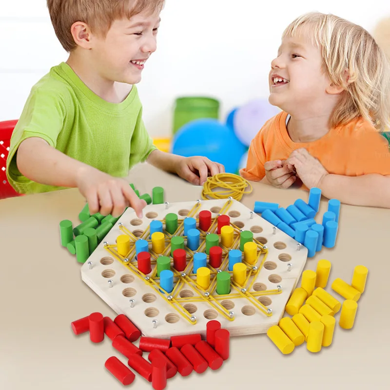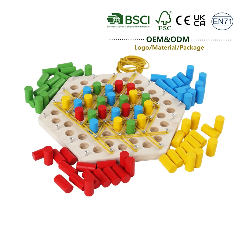 - 百变玩法:色彩鲜艳的木钉和橡皮筋激发无限创意,让孩子们乐在其中,学个不停。