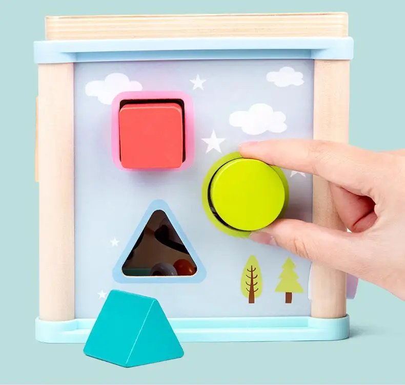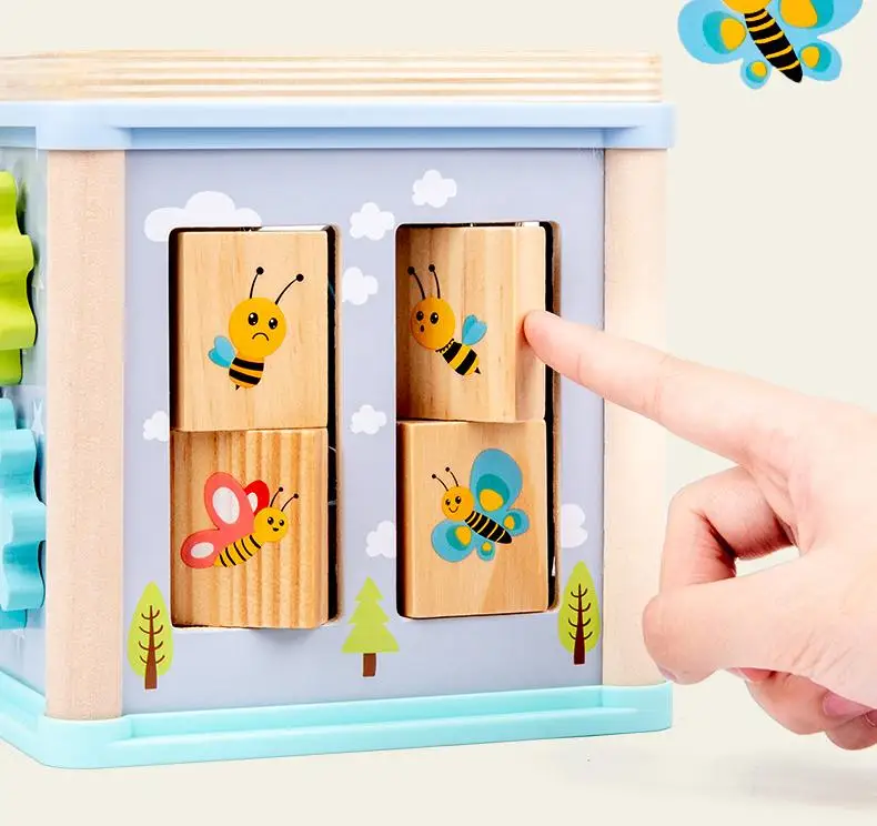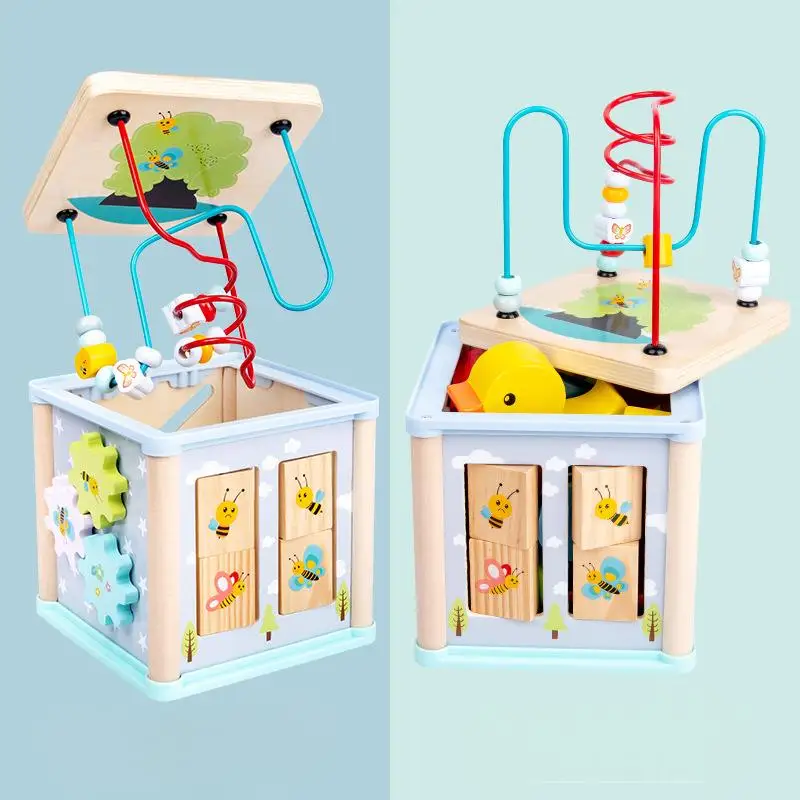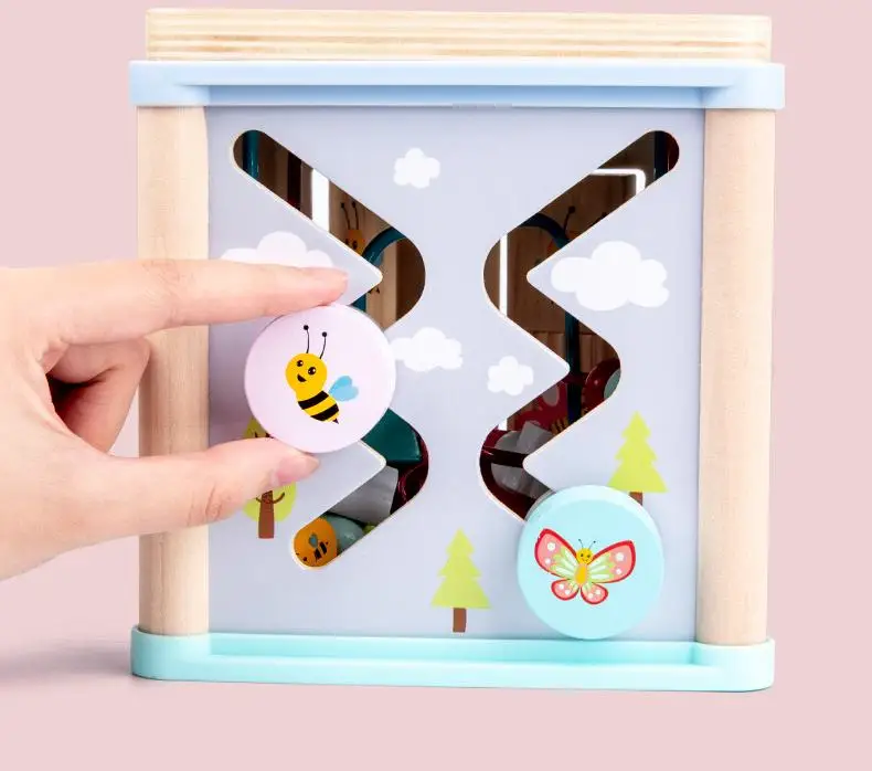 首页    木制游戏    繁忙的董事会    蒙特梭利玩具 5合1多功能串珠绕线&形状分类配对游戏拼图木制活动立方体儿童玩具