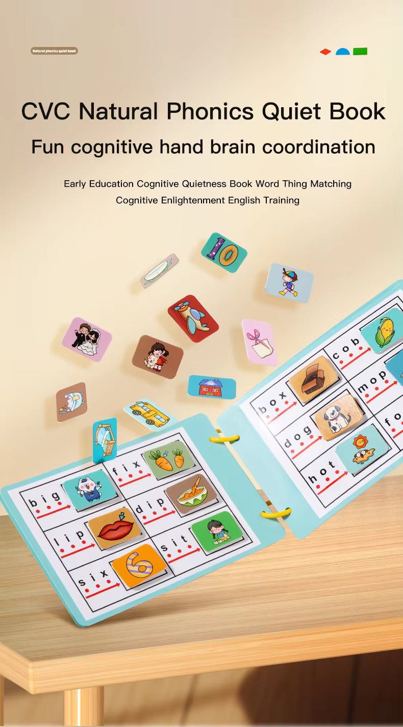 首页    教育玩具    蒙特梭利儿童活动书 CVC 词组系列 声音拼读识字配对游戏 阅读拼写技能玩具 CPC CE EN71 认证